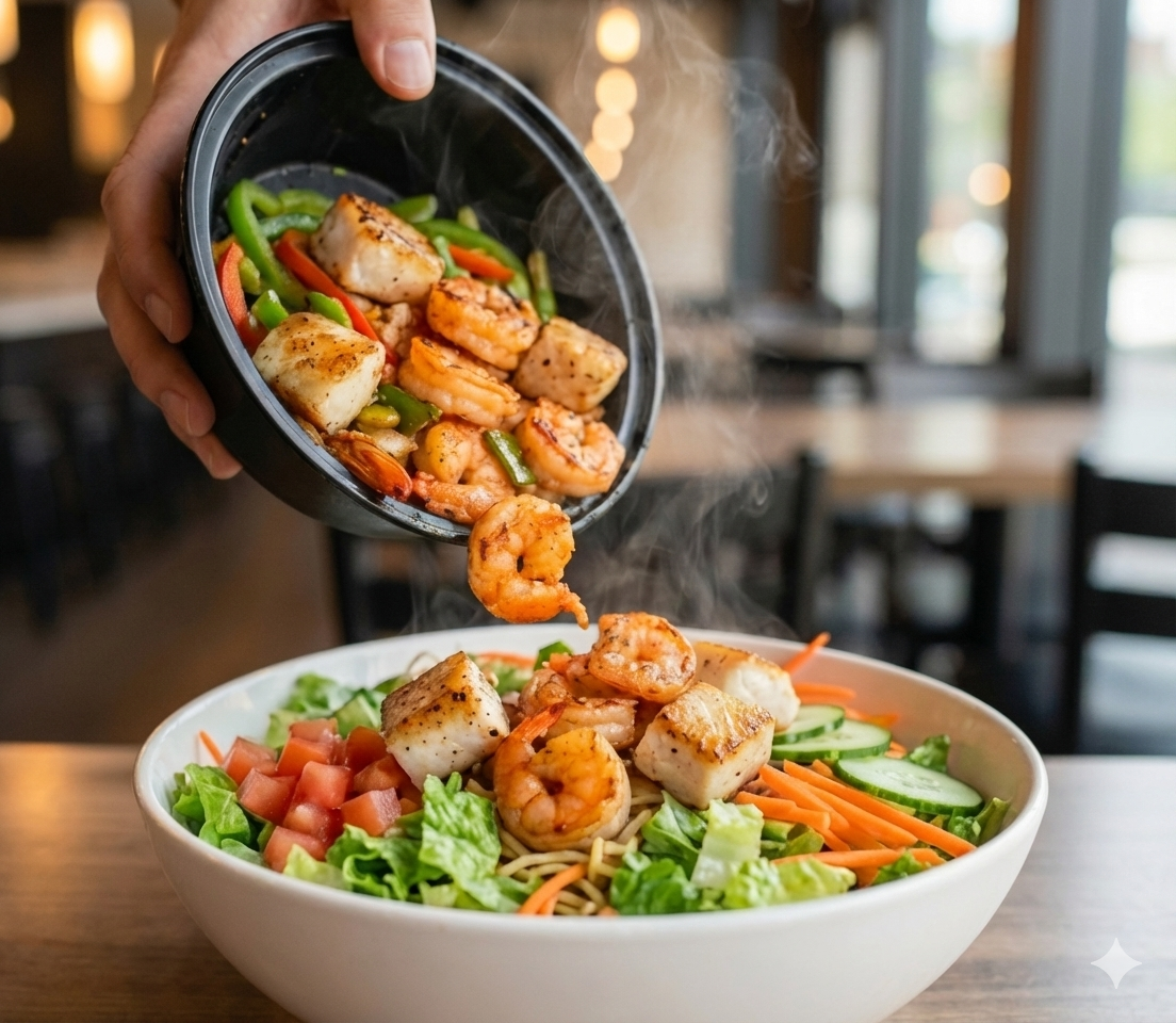 Each bowl features eight large shrimp paired with 5–9 ounces of deep-sea fish or chicken, delivering 60–120 grams of clean protein. Naturally rich in Omega-3s, it’s built to fuel your day without weighing you down.
