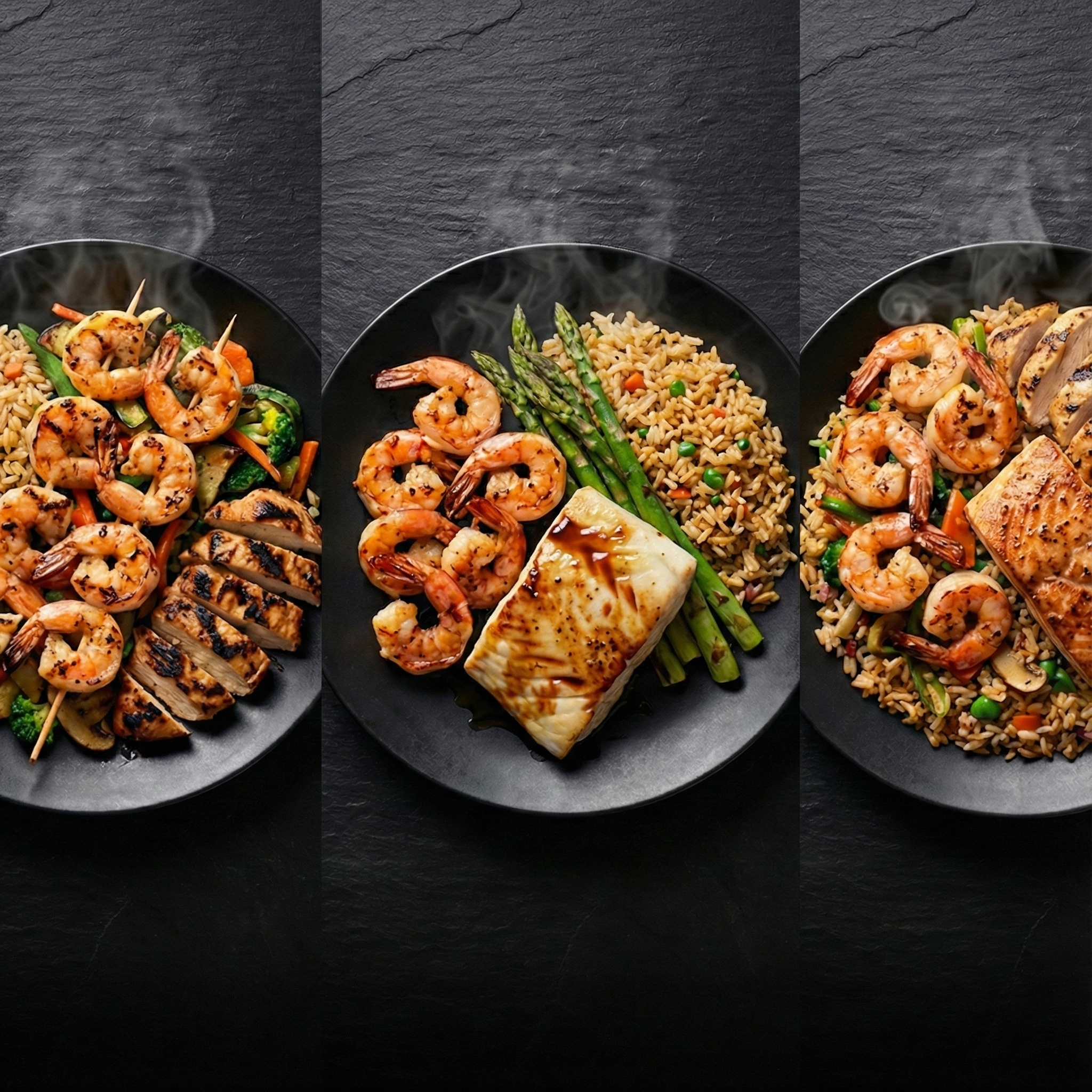 We cook every bowl on high-heat hibachi grills, ensuring your meal is served hot, flavorful, and never fishy.